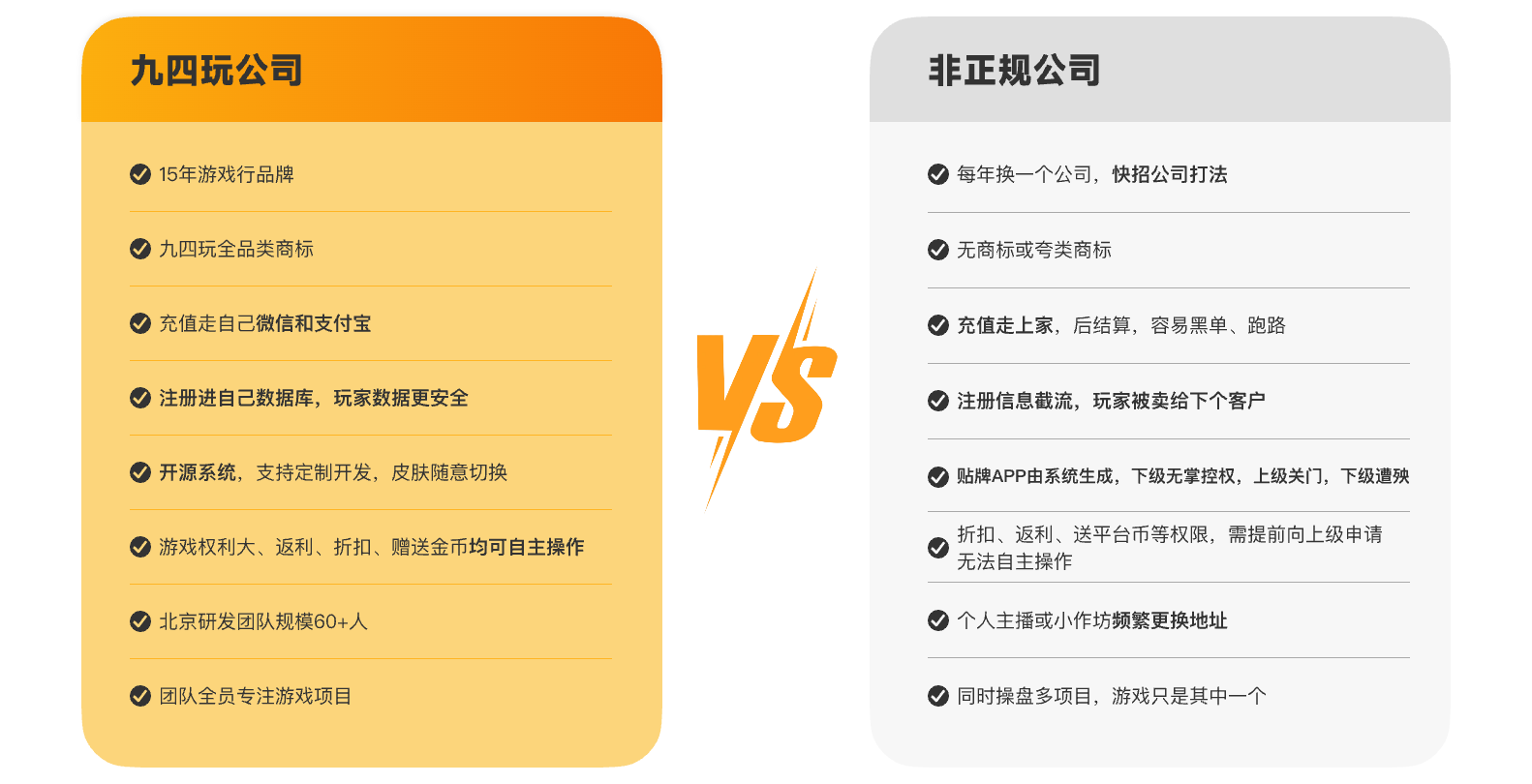 旗下产品:手游平台系统、页游平台系统、H5游戏平台系统、游戏平台三合一版。九四玩致力于游戏平台系统开发、游戏代理、游戏运营指导等服务。